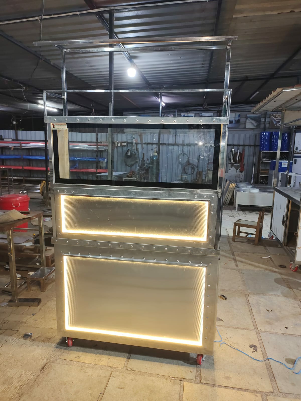 Material: Stainless Steel Brand : Tip Top Counter Shape: Rectangular Height : 5.6-7 ft Top Workbench : Stainless Steel Made in India